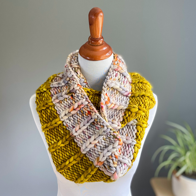 Looking for a quick knit cowl? This free pattern uses US size 15 (10.0mm) knitting needles and super bulky yarn for create this beautiful textured cowl. The slip stitch rib pattern looks great on both sides of the project.