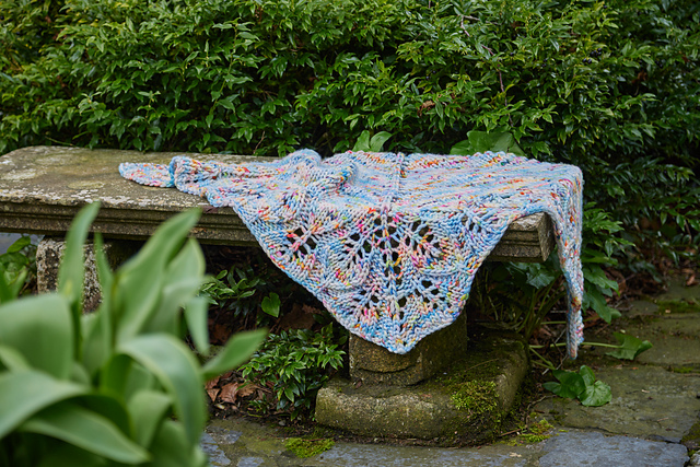 Look how beautiful this lace shawl pattern is! It is not common to find lace knit with super bulky yarn, but this design and its talented designer pulled it off spectacularly. Knit from the top down, this shawl with a stunning lace border is knit with 10.0 mm needles and is bound to turn heads!